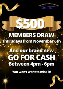 The Manurewa Cosmopolitan (Cossie) Club extends a warm welcome to all members, affiliated members and members’ guests.